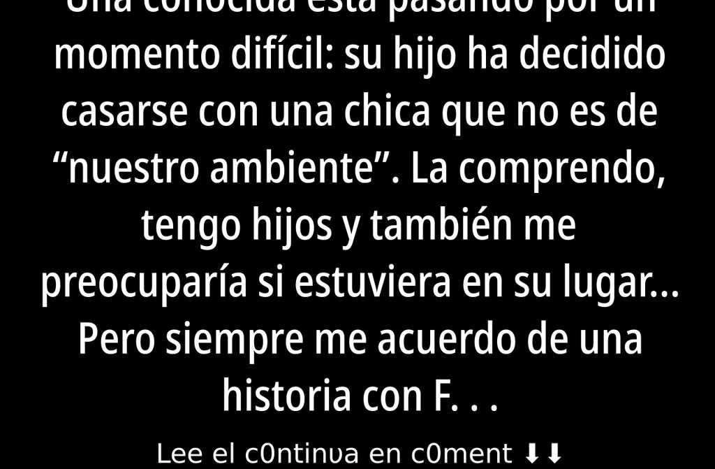 Una conocida está pasando por un momento difícil: su hijo ha decidido casarse con una chica que no es de nuestro ambiente. La comprendo, tengo hijos y también me preocuparía si estuviera en su lugar…