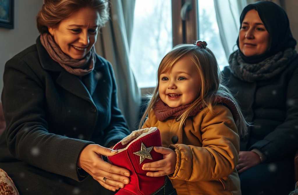 Los dedos de María temblaron al abrir la cremallera. Sacó un sándwich envuelto en papel, un par de gruesas medias, el cuaderno de vales y, por fin, una pequeña pareja de botines: piel de becerro, forrados de felpa, con dos estrellas plateadas a los lados. Un tesoro invernal.