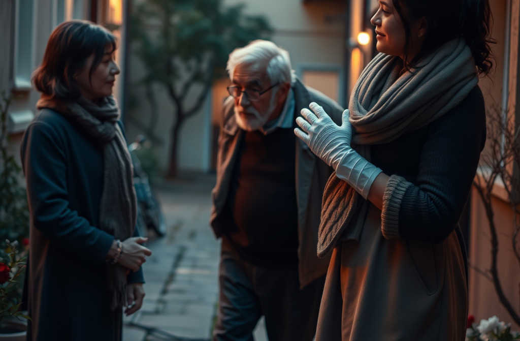 Saqué las toallitas que siempre llevo en mi mochila y con cuidado empecé a limpiarle las heridas. No quería levantarle sin antes quitarle la sangre, por no ponerme perdida (seré una maniática, pero no podía evitarlo). Cuando por fin acabé, le ayudé a incorporarse. Le pregunté si me podía decir su dirección, pero sólo indicó con la mano que le siguiese. Así, guiada por su dedo, le llevé hasta un portal del mismo barrio. Allí, señalando el telefonillo, me mostró dos números con los dedos. Supuse que era el piso. Llamé y enseguida salió una voz de mujer, desesperada. El abuelo empezó a hacer ruidos, y a los pocos segundos bajó corriendo una señora, acompañada de un hombre.