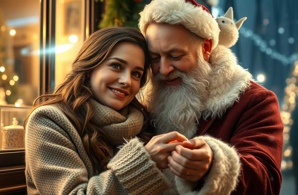 De Iván, la chica de rojo, que ha venido a proponerte matrimonio responde Papá Noel, y en ese momento Iván aparece en el umbral, sonriendo y con un ramo de rosas en la mano.