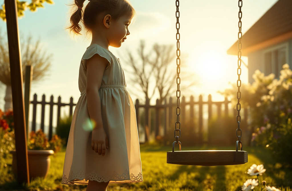 En medio del jardín había columpios que se mecían con la brisa y la invitaban.