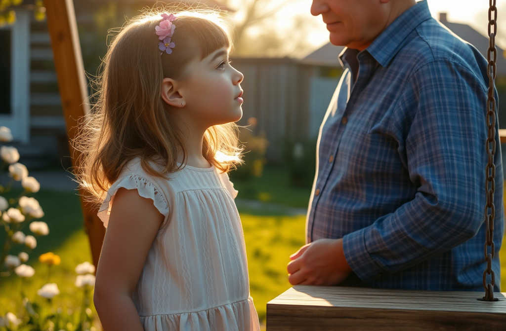 Una tarde, mientras Marta observaba a Ignacio trabajar en el patio, se dirigió a la casa de su amiga del barrio. Al volver al anochecer, al abrir la puerta quedó boquiabierta: en medio del patio había columpios que se mecían con la brisa. «¿Son para mí? ¡Ignacio, ¿los has hecho tú?!», exclamó Marta sin poder creerlo. «¡Claro, Marta! ¡Disfruta!», respondió Ignacio, siempre serio, con una carcajada inesperada. Marta se subió y se balanceó, sintiendo el viento silbando en sus oídos; jamás había sido tan feliz.