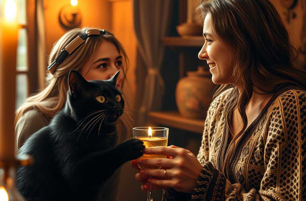 Al fin, harta, la bruja de sangre antigua se revuelca la mano y exclama: «¡Si el amor me falla, que me falle!». En vez de buscar a un galán, adopta a un gato negro y descarado, al que llama Peluso.