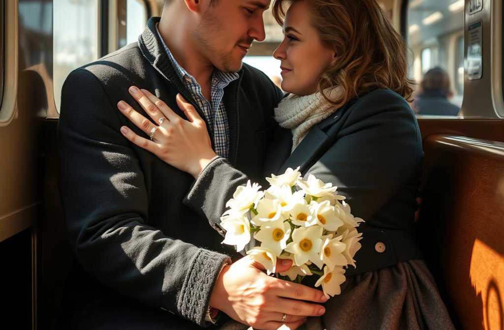 Al amanecer, el tren se acercaba a la estación. María del Pilar se arregló con esmero, ansiosa por reencontrarse con su familia. Alejandro, al observar sus preparativos, sintió una punzada de celos, como si la noche hubiera sido tan intensa que no quería que acabara. Cuando el tren se detuvo, ella se despidió con un beso en la mejilla, agitó la mano a los que la esperaban en la plataforma y se lanzó hacia su marido y sus dos niños, quien llevaba un gran ramo de crisantemos blancos. Se acercó, besó a su esposo y a sus hijos, y volvió la vista a Alejandro, susurrando: