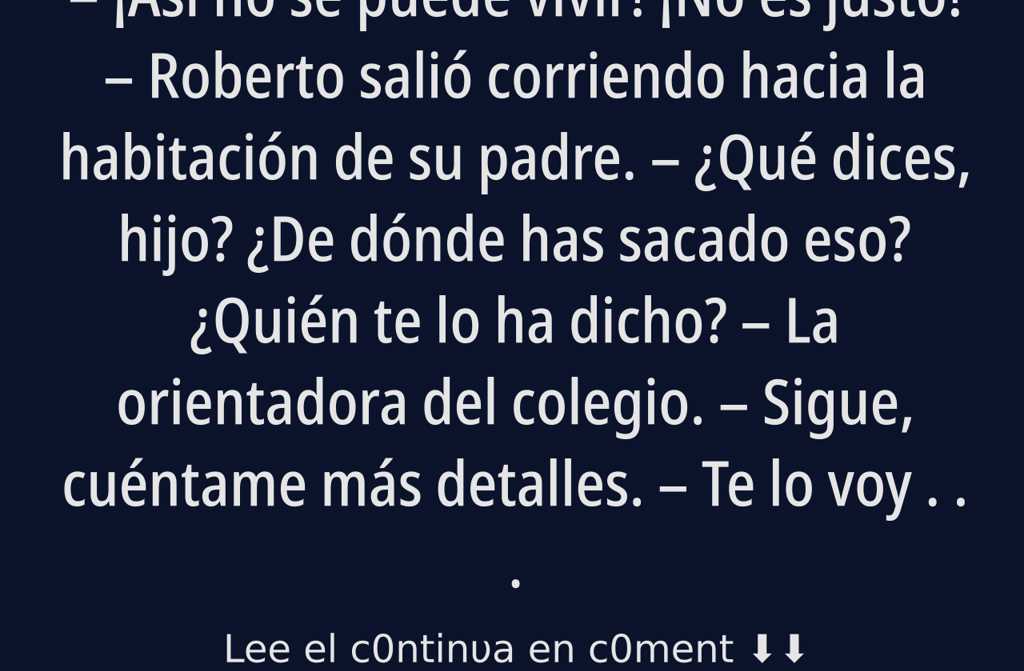 ¡Así no se puede vivir! ¡No es justo! Roberto salió corriendo hacia la habitación de su padre.