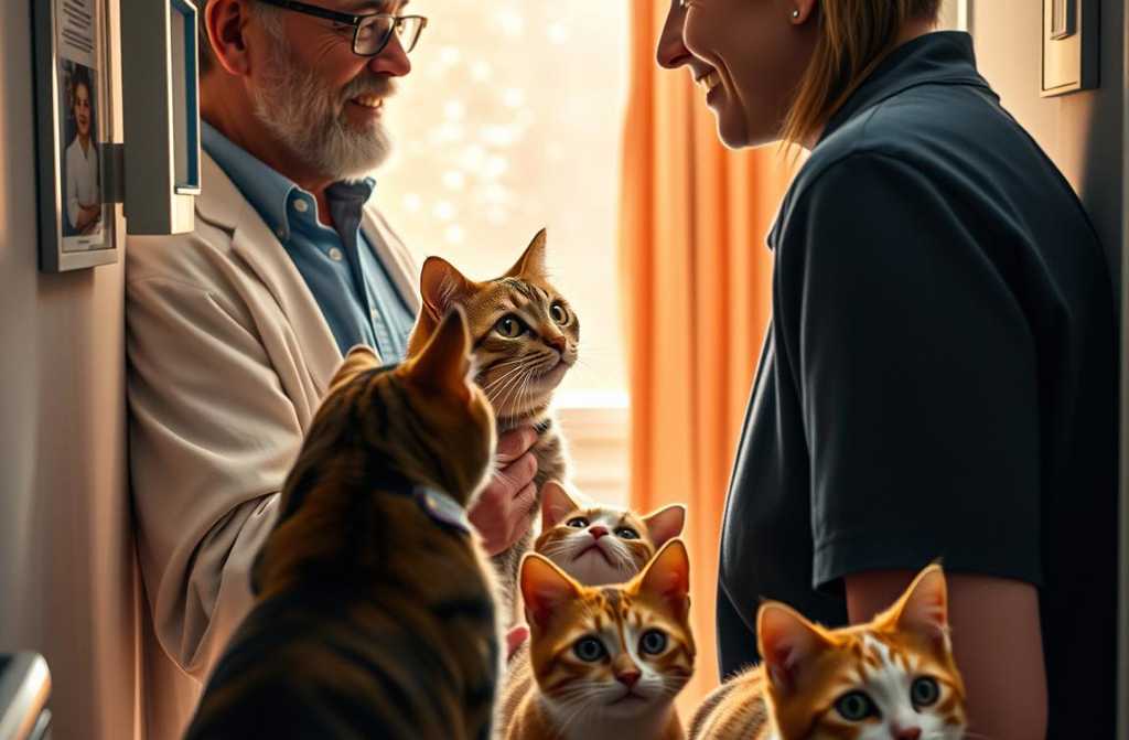 Mira el reloj, acomoda con destreza los seis collares multicolores, verifica que no estén sueltos y se dirige a la ventana de la habitación donde su esposa despierta tras la operación. Pronto le permitirán entrar. Entonces podrá quejarse de los seis felinos holgazanes que, sin ella, se niegan a escucharlo.