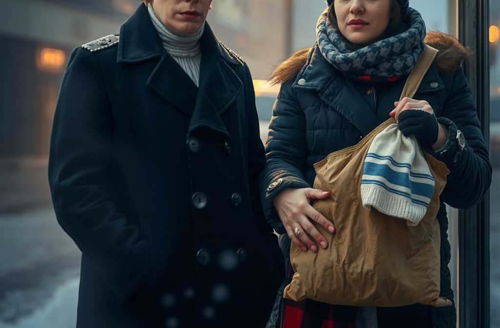 Frente a frente, la ventisca empujaba bajo la marquesina. La mujer sujetaba una bolsa de supermercado, granate, de la que asomaba un gorro infantil con pompón.
