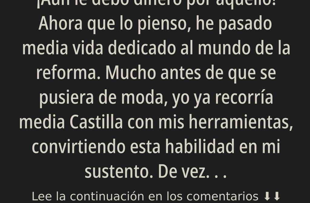 Ahora que lo pienso, he pasado media vida dedicado al mundo de la reforma. Mucho antes de que se pusiera de moda, yo ya recorría media Castilla con mis herramientas, convirtiendo esta habilidad en mi sustento. De vez en cuando, alguna prima o un tío me llamaban para echar una mano con alguna chapuza o arreglillo. Recuerdo perfectamente aquel día: sonó el viejo teléfono de casa y al otro lado estaba mi primo Alfonso. Me pidió ayuda, con ese tono que no deja lugar a la negativa.