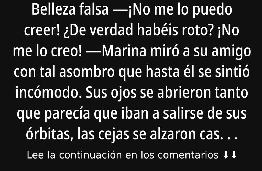 ¡No me lo puedo creer! ¿De verdad habéis roto? ¡No me lo creo! Marina miró a su amigo con tal asombro que hasta él se sintió incómodo. Sus ojos se abrieron tanto que parecía que iban a salirse de sus órbitas, las cejas se alzaron casi hasta la raíz del pelo y sus labios se entreabrieron sin querer, como si la noticia fuera sencillamente imposible. ¡Si tú por Alba te desvivías! Yo siempre os ponía de ejemplo ¡Si soñaba con una relación como la vuestra!