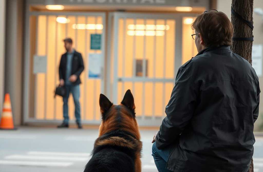 El pastor alemán dudó, pero obedeció. Se sentó frente a la entrada y vio cómo la ambulancia desaparecía. Tras una hora de espera, se echó junto al muro, sin molestar.