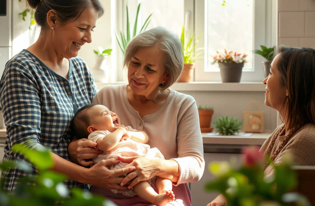 Ahora, Lola está en la cocina de Marina, con su nieta Sofía en brazos. La pequeña intenta agarrar con fuerza el dedo de su abuela.
