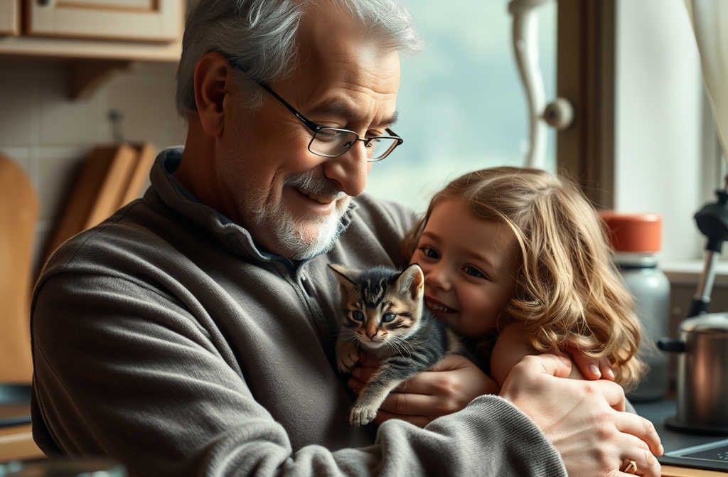 Una hora después, el gatito, llamado Toby, reposaba en el regazo de Cayetana, mientras ella se acurrucaba contra el abuelo, feliz.