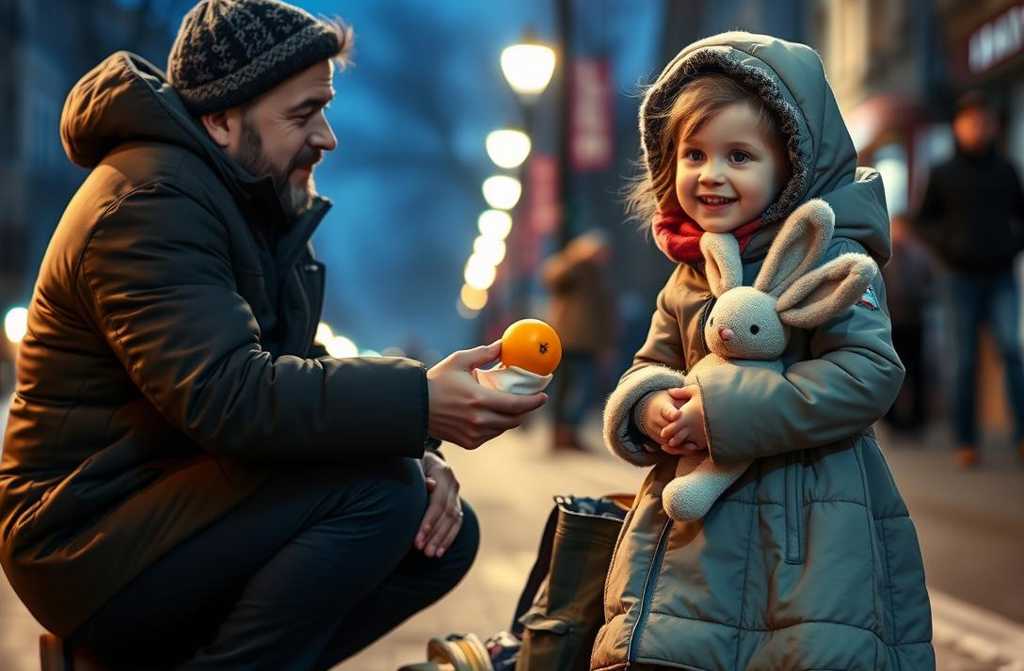 La mujer parecía agotada, sus brazos envolvían firmemente a la niña, como protegiéndola del viento helado. La pequeña, de unos cinco o seis años, apretaba contra su pecho un conejo de peluche desgastado, al que le faltaba un ojo. Delante de ellas, un vaso de plástico vacío con apenas un par de monedas dentro.