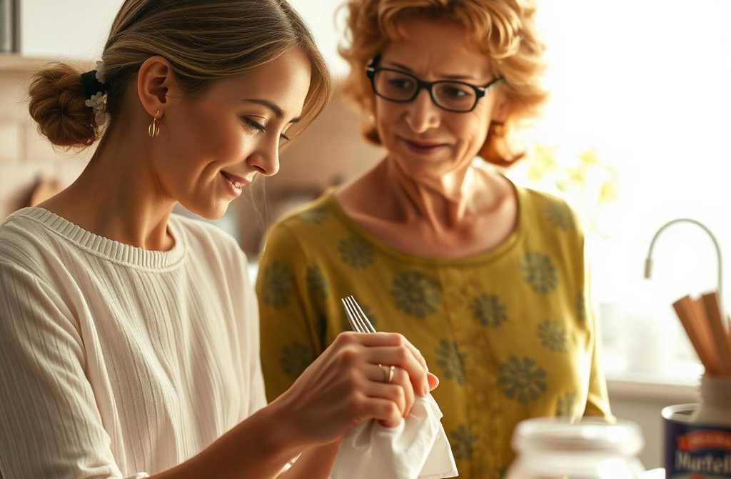 Mi tía me ofreció algo de comer y empezó a poner la mesa. Mientras disponía los platos, noté que estaban sucios. Cuando ella servía del cazo, yo saqué de la bolsa las toallitas antibacteriales y limpié los tenedores.