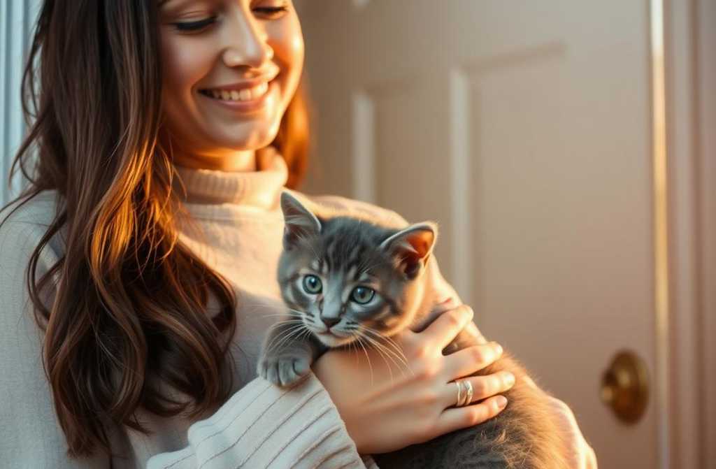 En la alfombrilla, sentado como un pequeño guardián, había un minino gris con rayas, diminuto y pulcro. Sus ojos, redondos como lunas, la miraron con curiosidad. Al verla, el gatito se levantó, tambaleándose un poco, y soltó un *”miau”* tímido. Con manos temblorosas, Lidia lo alzó y lo apretó contra su pecho.