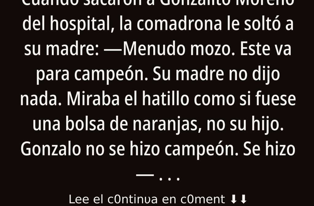 Cuando sacaron a Gonzalito Moreno del hospital, la comadrona le soltó a su madre: Menudo mozo. Este va para campeón.