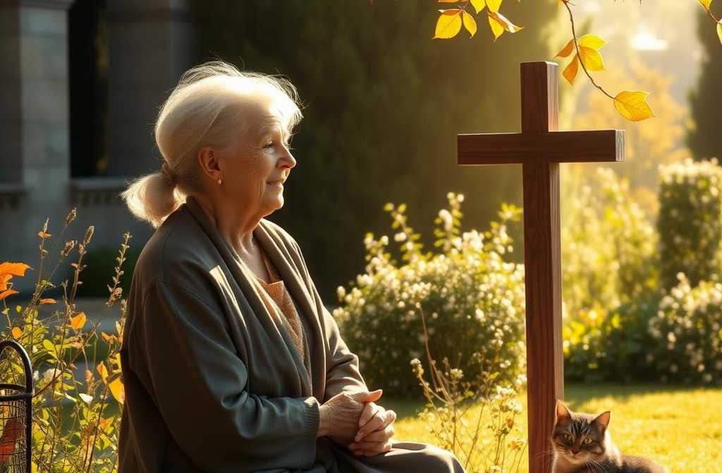 Ahora, sobre su tumba, hay una sencilla cruz de madera. Y al sol se acurruca la gata vieja que ella alimentaba. Y parece que el viento entre las ramas susurra:
