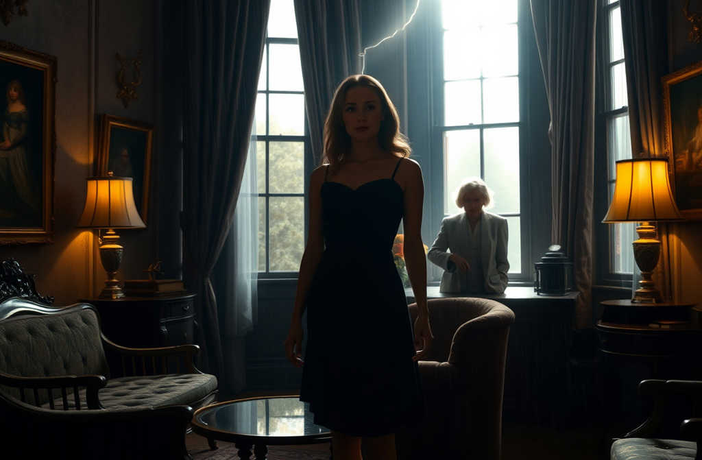 Un trueno la despertó de golpe. Un relámpago iluminó la habitación, y entonces la vio: una anciana de pie frente a ella.