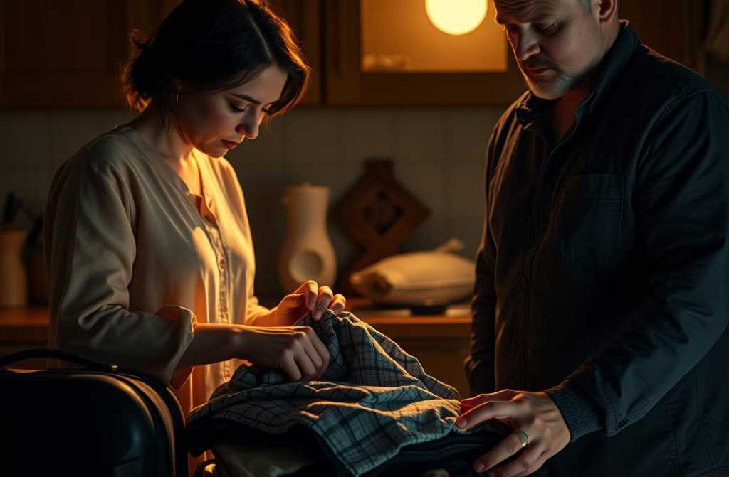 Cuando él entró en el dormitorio, la vio con la maleta y preguntó, sorprendido: