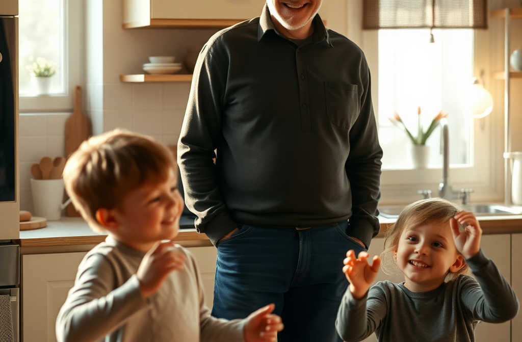Los niños, con MI apellido, abrazando al hombre que los abandonó.