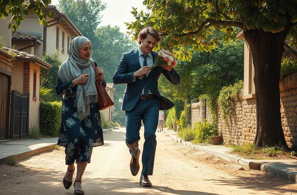 Javier le entregó el ramo de floresrosas blancas. Cogió la maleta y le ofreció el brazo. Juntos emprendieron el camino por la calle polvorienta, hacia la casa que les esperaba con las ventanas abiertas y la mesa lista para la vuelta del hijo.