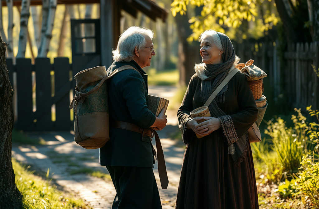 Una noche, mientras cantaba bajo el manzano, suena la puerta. La anciana Valentina entra con una bolsa pesada, como si cargara cien kilos.