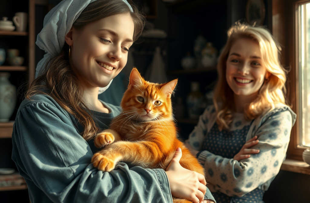Al verle, el gato saltó entre sus brazos, ronroneando tan fuerte que hasta Carmen se rindió.