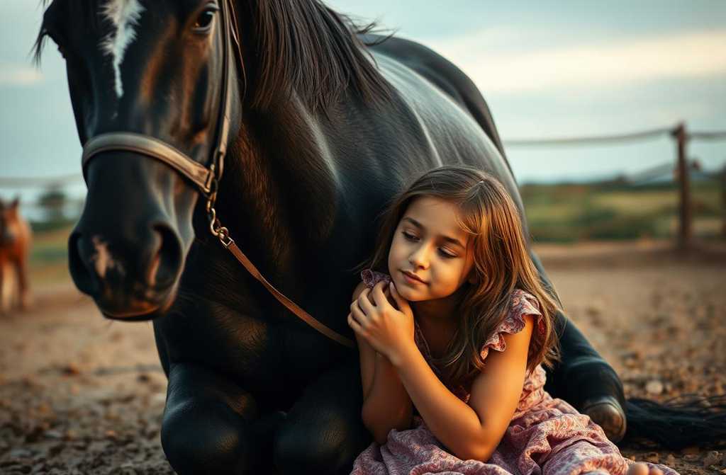 Tru eno la vio al instante, relinchó y se movió con ímpetu. Sus cascos retumbaron sobre la tierra. La niña se detuvo a tres metros del potro, sin acercarse más. No dijo nada, solo se sentó, sin huir, sin extender la mano, solo bajó la cabeza y esperó. El caballo bufó con fuerza, pero no se acercó ni se alejó.