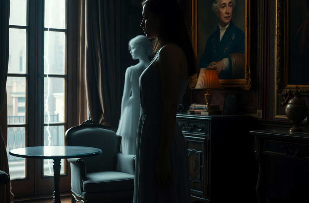 Ella miró la imagen. Era cierto: tras su silueta, una figura borrosa, como de una anciana, se insinuaba.