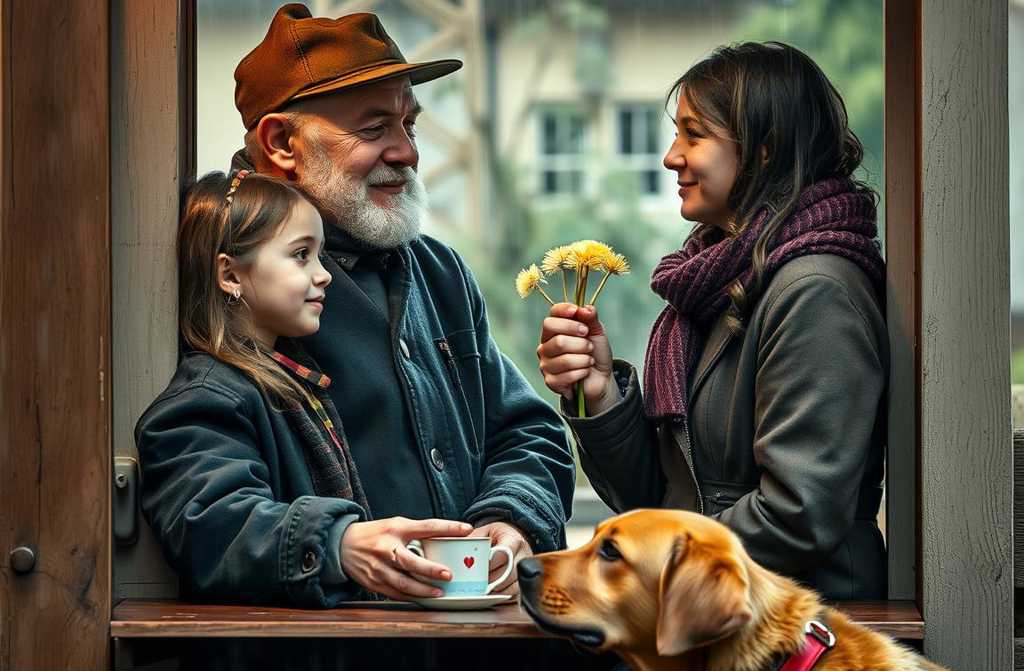 La puerta de la caseta crujió. En el umbral estaba una niña, toda empapada, de unos ocho años, llamada Almudena del apartamento 33. En sus manos apretaba con fuerza un rizado ramillete de dientes de león y hierbas de la carretera.
