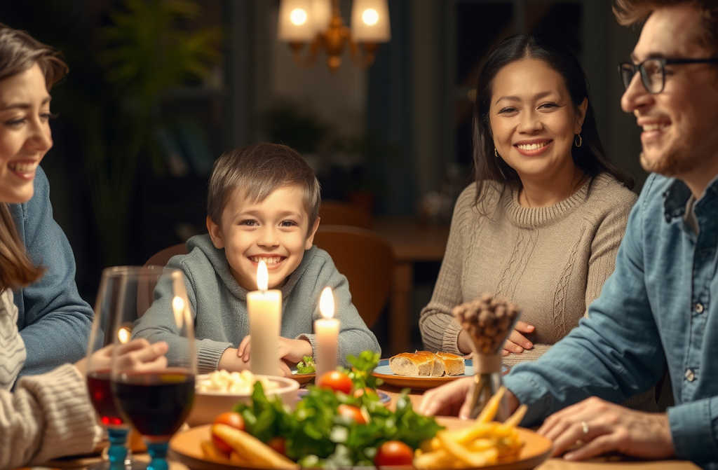 Mi madre no pudo evitar reírse, señalando la comida de su hijo.
