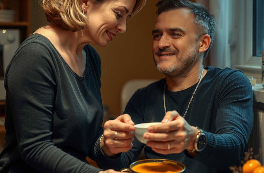 Tenía una inflamación tremenda y en casa no había absolutamente nada. Menos mal que llevé medicamentos y algo de comida, porque en su nevera sólo tenían, literal, las pastillas de dieta de ella y poco más. Me costó un mundo no echarle la bronca allí mismo. Me puse a preparar una infusión y salí volando al supermercado a comprar caldo para el pobre.