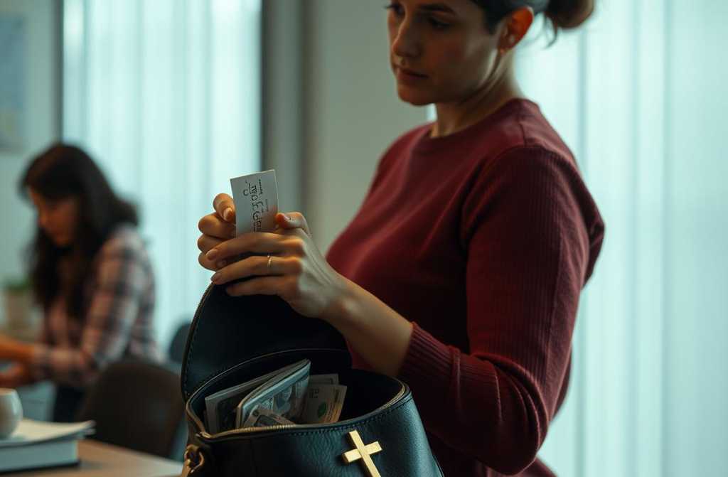 Era un día ajetreado, así que entró silenciosamente en la sala. El bolso de Lucía llamó su atención. Al abrirlo para dejar el dinero discretamente (no quería avergonzarla), algo brillante lo detuvo: un crucifijo de oro.