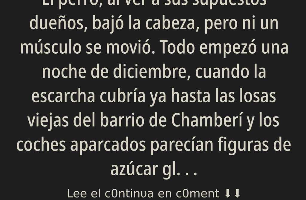 Todo empezó una noche de diciembre, cuando la escarcha cubría ya hasta las losas viejas del barrio de Chamberí y los coches aparcados parecían figuras de azúcar glas. Pastor, un perro corpulento, mezcla de pastor alemán y misterio, con canas en el hocico y ojos cansados de tanto mirar, apareció junto al segundo portal como si el frío le hubiera inventado. Llegó, sencillamente, a desmentir la idea de que lo imposible no sucede en los barrios silenciosos.