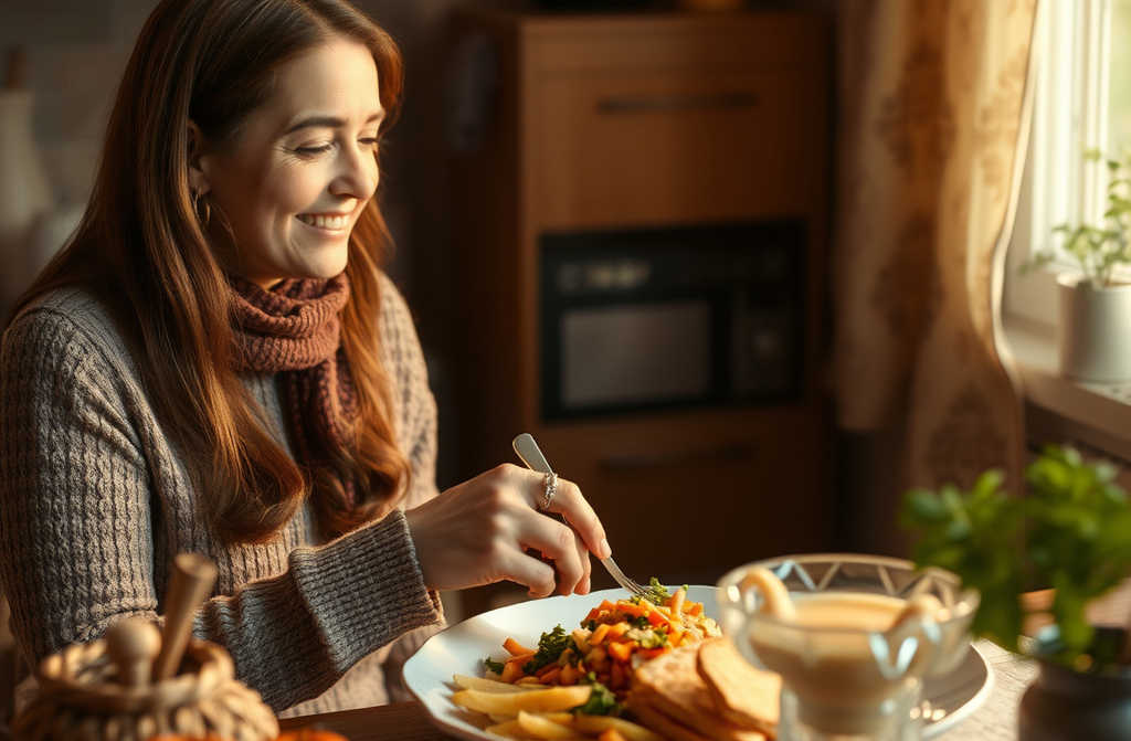 Luisa se dirige al fregadero, pensando en la cena. Hace tiempo que la casa estaba llena de gatitos y cachorros; ahora el nuevo inquilino es otro. Se sirve una porción de puré, coloca dos salchichas fritas en el plato, empuja la ensalada y se sienta a comer con apetito.