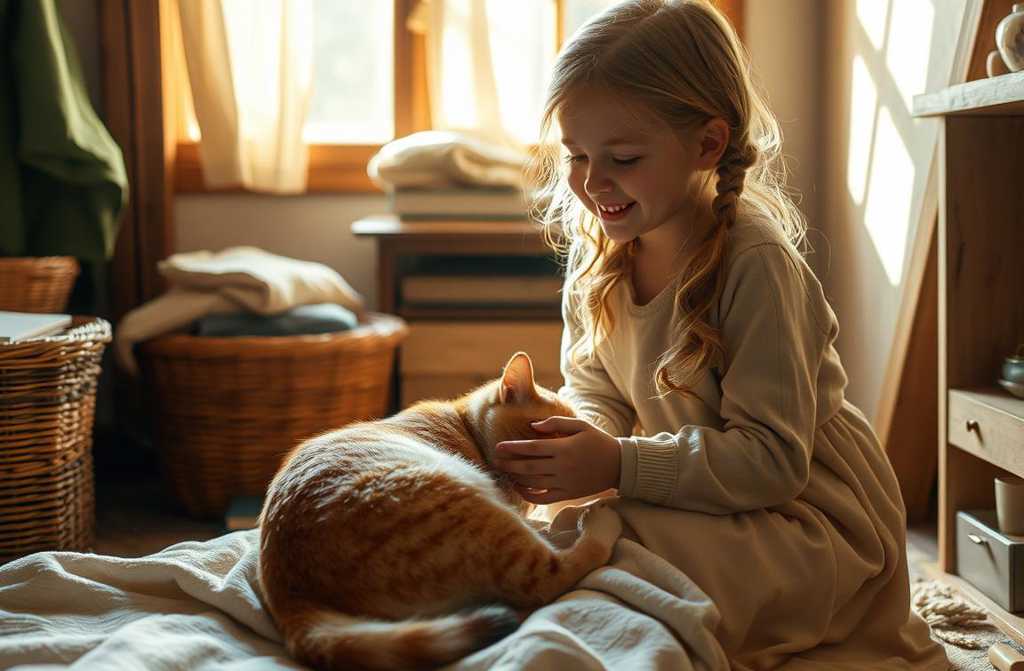 El gato, al oír la voz del abuelo, sintió una extraña serenidad y bajó los escalones. Aroa le tendió la mano y, con una voz tierna, le dijo: