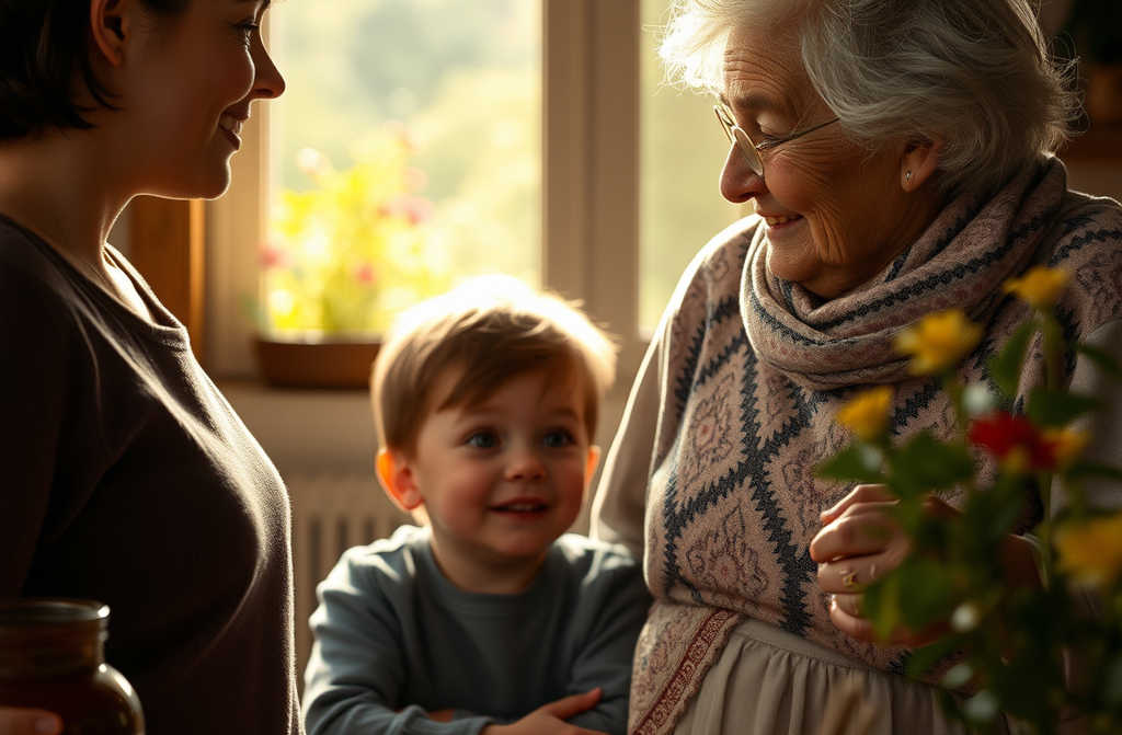 Mi madre, sentada junto a la cama, se iluminó por la alegría.
