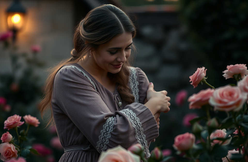 Sofía salió al patio. En el macizo había un rosario medio florecido. En una mano una pala, en la otra un hacha. Quiso convertir el rosario en huerto, pero no pudo moverlo.