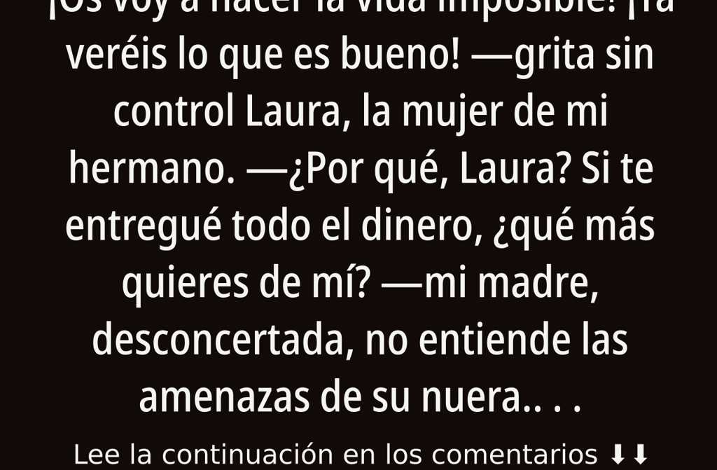 ¿Por qué, Laura? Si te entregué todo el dinero, ¿qué más quieres de mí? mi madre, desconcertada, no entiende las amenazas de su nuera.