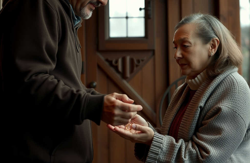 La vida sigue a toda prisa después de esobaños entre chapoteos, cuentos antes de dormir y el agotamiento de otro día interminable. Pero por la mañana, luces parpadeantes y coches de la policía llenan la calle, asustando a los niños y a punto de pararme el corazón. Al abrir la puerta, un agente se presenta como nieto de Clara. La historia ha corrido por la familia: la persona desconocida que devuelve el anillo, en vez de venderlo. No vienen a detenerme, sino a darme las gracias. Clara ha enviado una carta manuscrita dándome las gracias por devolverle lo que resumía toda su vida y recuerdos. Escuchar a los agentes decir que historias como la mía les recuerdan que todavía hay gente honesta me sobrecoge, pero para bien.