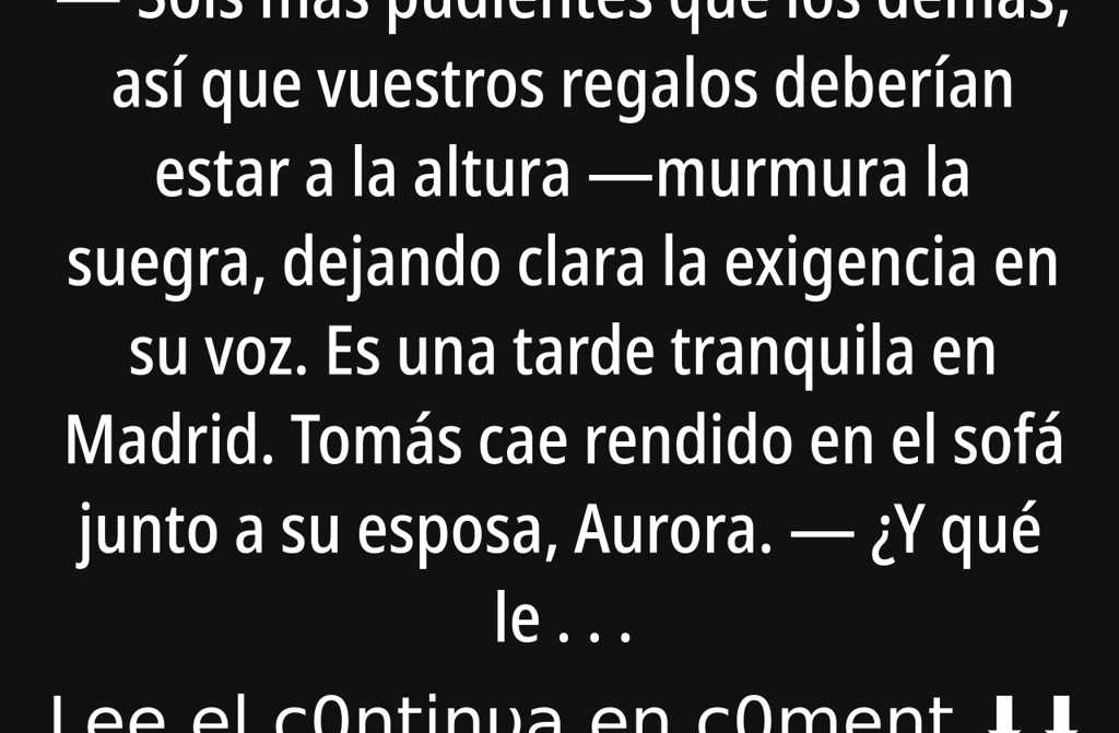 Sois más pudientes que los demás, así que vuestros regalos deberían estar a la altura murmura la suegra, dejando clara la exigencia en su voz.