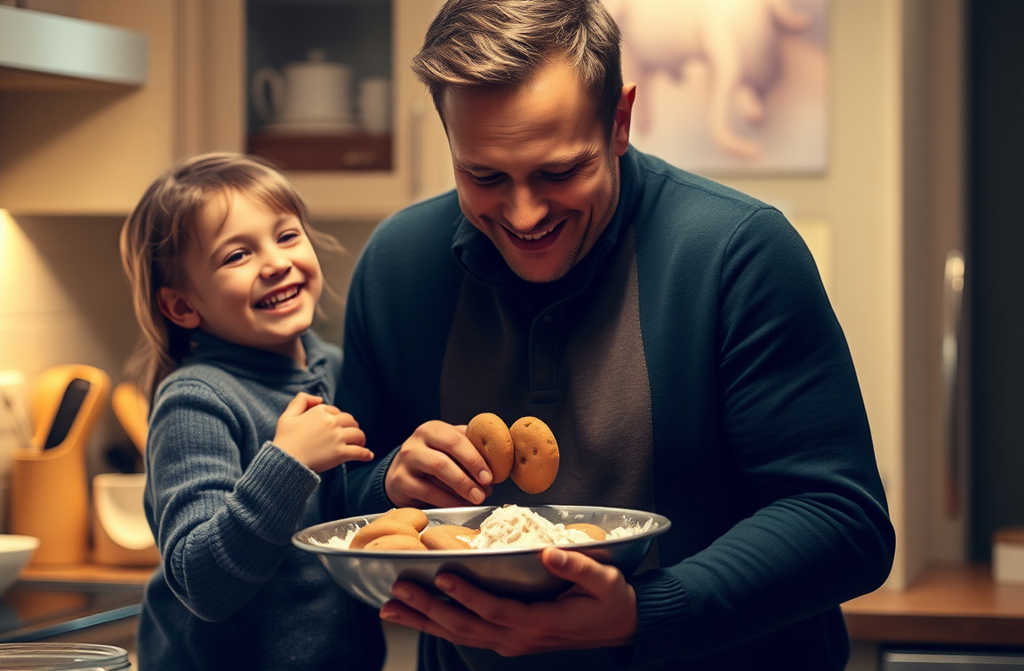 Gonzalo, ya fuerte, volcó el cuenco de chocolate sobre el bol. Ana, alta y sonriente, removía la masa con una cuchara de palo, riendo.