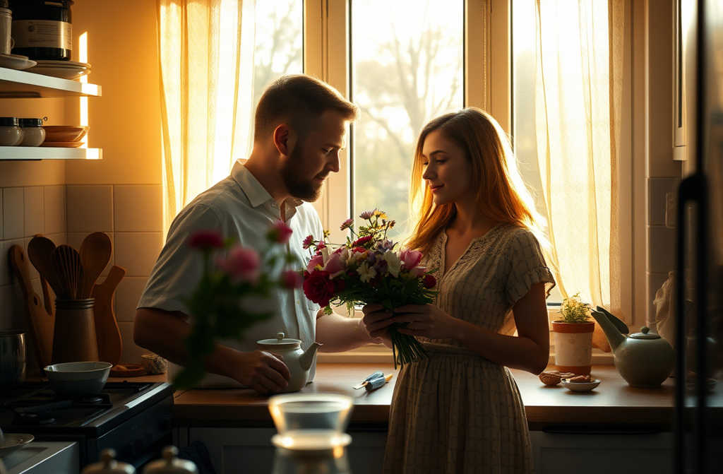 Entró en una casa limpia, con la cena lista y yo con flores en la mano.