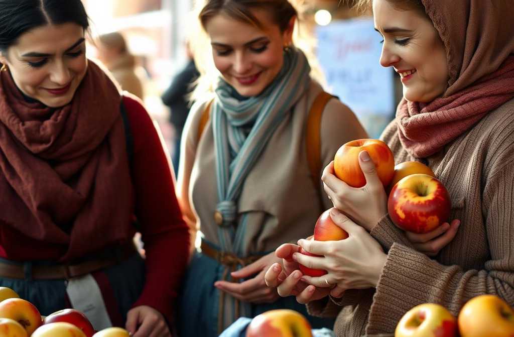 En un mercado de Sevilla, tres mujeres se detuvieron frente a un puesto de manzanas.