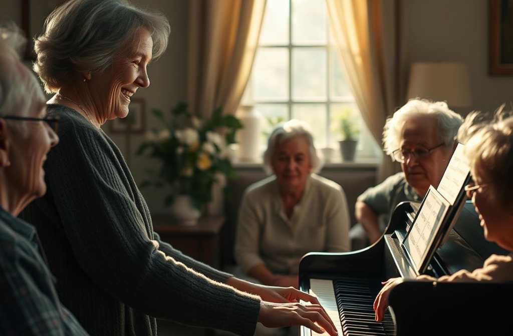 María del Mar se sentó frente al instrumento; sus dedos rozaron las teclas y la habitación se llenó de melodías. Vio cerrar los ojos a la anciana, quien sonreía y parecía viajar en recuerdos.