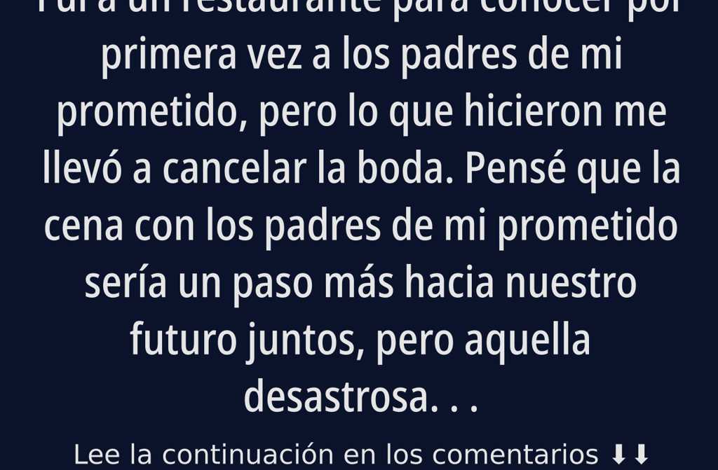 Pensé que la cena con los padres de mi prometido sería un paso más hacia nuestro futuro juntos, pero aquella desastrosa velada me abrió los ojos respecto al mundo de Alejandro. Al terminar la noche, no tuve más remedio que cancelar la boda.