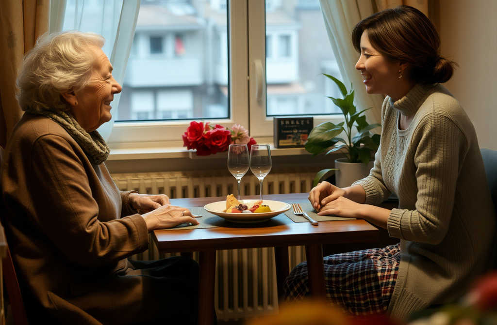 En ese momento sonó el teléfono de María Isabel y respondió para tranquilizar a su marido: No te preocupes, alguien me ayudó a llegar y ahora estamos todos cenando en la mesa que ha preparado Lucía.
