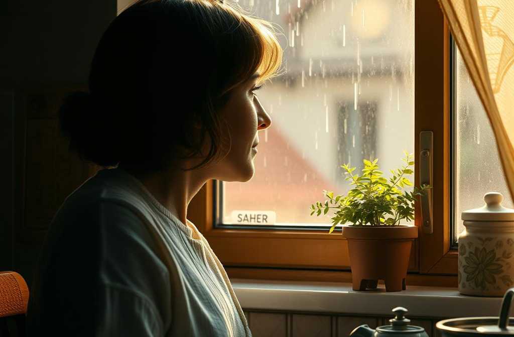 Ella dio las gracias. Luego miró por la ventana, pensativa, hasta que los niños la llamaron para cortar la tarta.