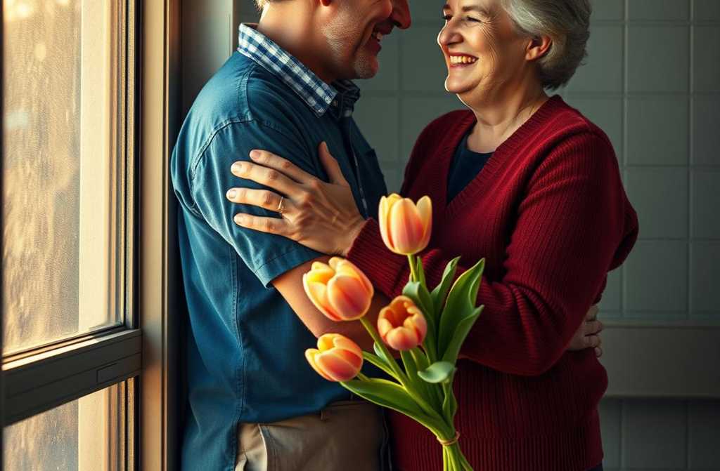 Abajo, el padrastro y mi madre se aferraban el uno al otro como en una tormenta, con los pies temblorosos, como yo tras una larga enfermedad. Ya se preparaban para irse cuando la puerta se abrió de golpe; del exterior llegaba el aroma del sol y del agua. Mi padre, con chaqueta de trabajo, sostenía la puerta. En sus manos llevaba un ramo de tulipanes. Secé mis lágrimas con la mano, sonreí y avancé.