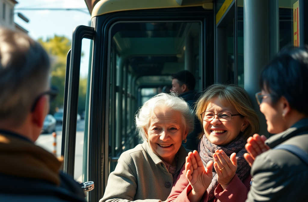 La ayudé a subir y todo el autobús rompió a aplaudir.